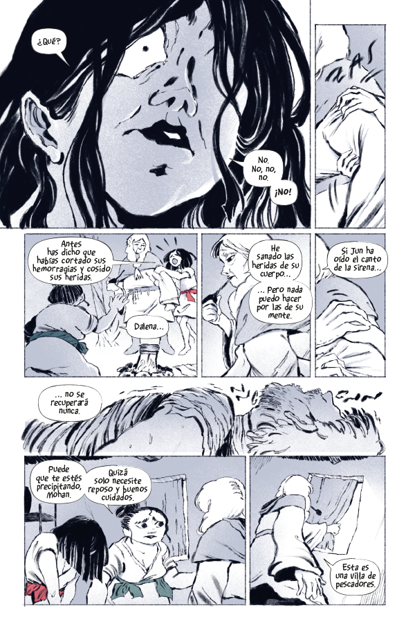 El océano entrega y el océano arrebata. Esas son las dos caras de la moneda que rige la suerte del pescador. Una moneda que hoy le muestra la cruz a Dalena: Jun, su esposo, se hizo a la mar al despuntar el sol y no ha regresado al ocaso. Bajo la luz de los plenilunios, la joven recorre las calas en busca de su amado. Chilla el nombre de Jun una y otra vez, con la esperanza de que sus gritos se conviertan en el faro que lo guíe de vuelta a casa. Lo que Dalena no sabe es que, para su desgracia, esta noche su voz no es la única que puede oírse entre las olas.